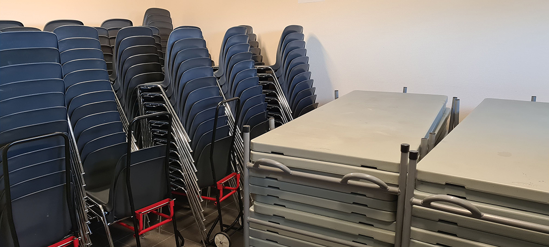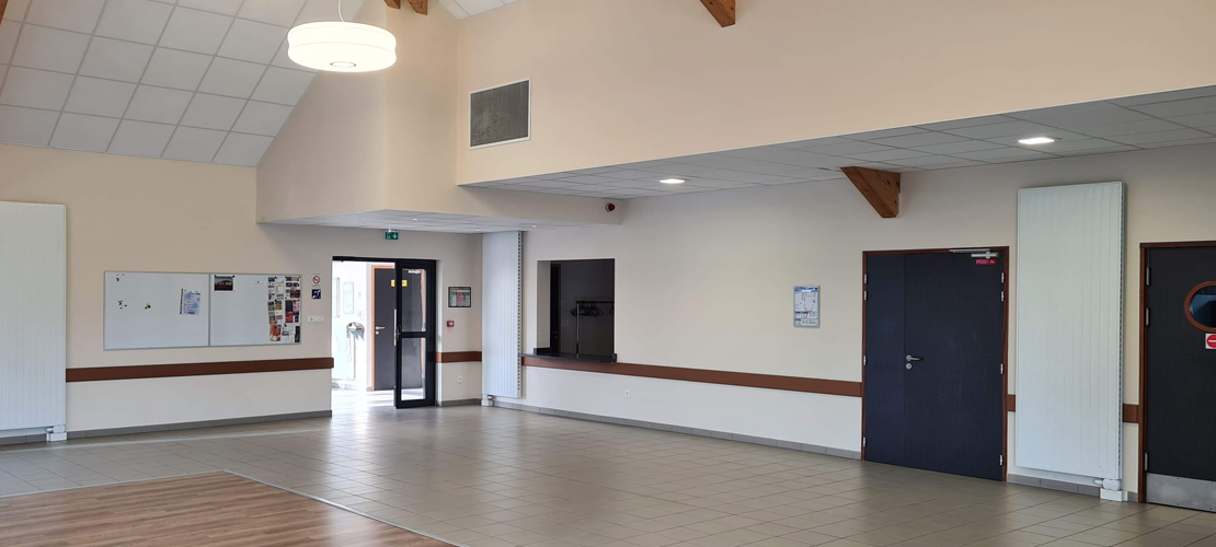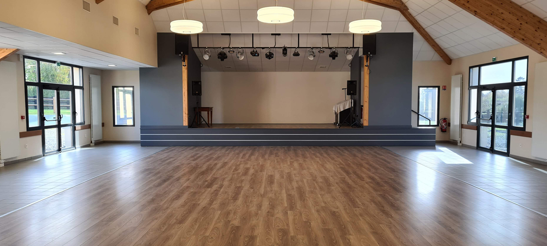 Une très belle salle polyvalente construite dans les normes d'un environnement durable avec géothermie et matériaux recyclables.